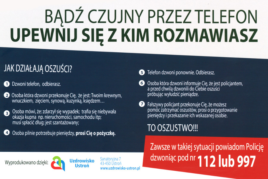 Kolejny raz ostrzegamy przed oszustami działającymi metodą „ na wnuczka” oraz przypominamy, żeby pod żadnym pozorem nie przekazywać pieniędzy nieznajomym. W miniony wtorek jedna z mieszkanek Zawiercia przekazał oszustom 70 tys złotych, pomimo iż wcześniej słyszała o sposobie działania przestępców. Dlatego ponownie apelujemy o szczególną czujność w kontaktach z obcymi osobami, które chcą pieniędzy dla ratowania bliskiej osoby. O każdym niepokojącym przypadku należy niezwłocznie powiadomić Policję pod nr 997 i 112.