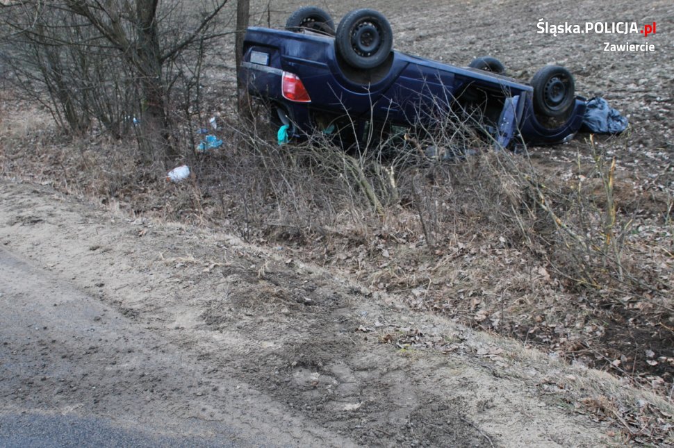 Do zdarzenia doszło dzisiaj o godz 13.40 na ul. Skarżyckiej w Zawierciu. Osobowym oplem kierował 61-letni mężczyzna. Tuż za zakrętem stracił panowanie nad pojazdem zjechał z drogi i dachował. Z pomocą przyszli świadkowie, którzy pomogli mu opuścić pojazd. Przeprowadzone przez policjantów badanie wykazało w jego organizmie ponad 2,5 promila alkoholu. Nietrzeźwy sam przyznał się, że jechał zbyt szybko i wpadł w poślizg. Policjanci sporządzili wymaganą dokumentację, zatrzymali kierującemu prawo jazdy oraz dowód rejestracyjny uszkodzonego pojazdu.