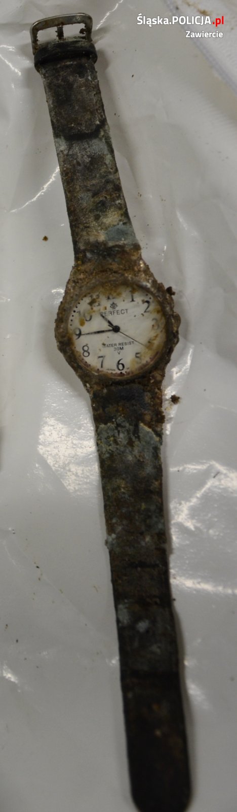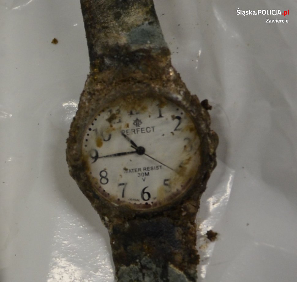 Zawierciańscy policjanci poszukują osób mogących pomóc w identyfikacji mężczyzny, którego zwłoki znaleziono 18 czerwca br. w budynku na prywatnej posesji przy ul. Daszyńskiego w Zawierciu. Mundurowi pod nadzorem prokuratora wykonali oględziny miejsca znalezienia ciała. Leżące na ziemi zwłoki znajdowały się w stanie daleko posuniętego rozkładu. Nie było przy nich żadnych dokumentów osobistych. Prokurator zarządził przeprowadzenie sekcji zwłok. Przy ujawnionych zwłokach znaleziono zegarek z białym cyferblatem marki „Perfect” ze skóropodobnym paskiem oraz medalik koloru srebrnego.