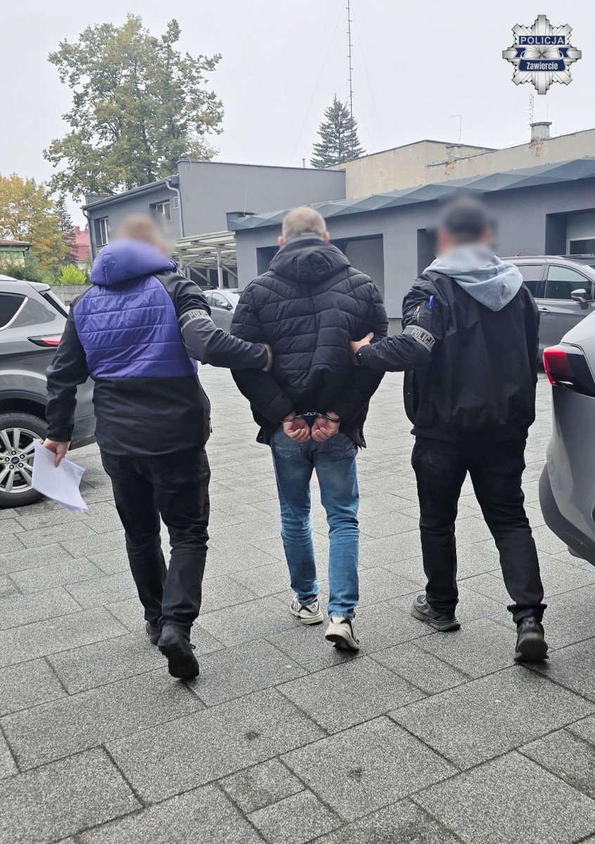 47-letni mieszkaniec Zawiercia usłyszał zarzuty. Odpowie za kradzież rozbójniczą, której dopuścił się w warunkach tak zwanej multirecydywy. Dodatkowo poniesie konsekwencje popełnienia przestępstw: gróźb karalnych, zmuszania do określonego zachowania i wywołania średniego uszczerbku na zdrowiu.