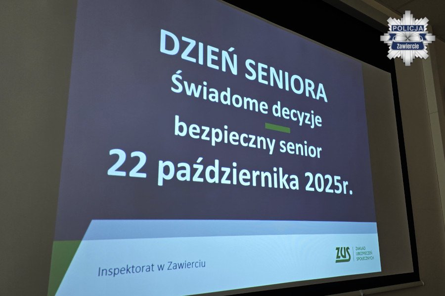 Dziś w Inspektoracie Zakładu Ubezpieczeń Społecznych w Zawierciu odbyło się spotkanie pod hasłem: Dzień Seniora. Świadome decyzje – bezpieczny senior. W przedsięwzięciu wzięli udział zawierciańscy policjanci.