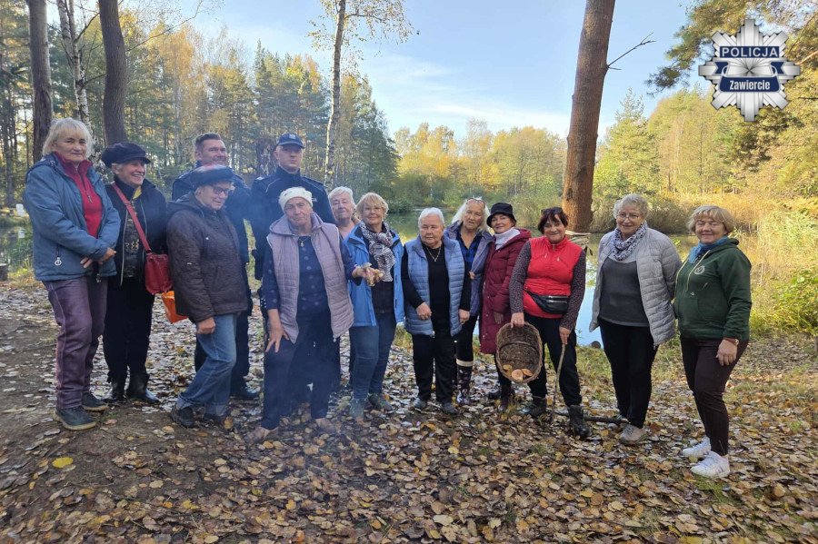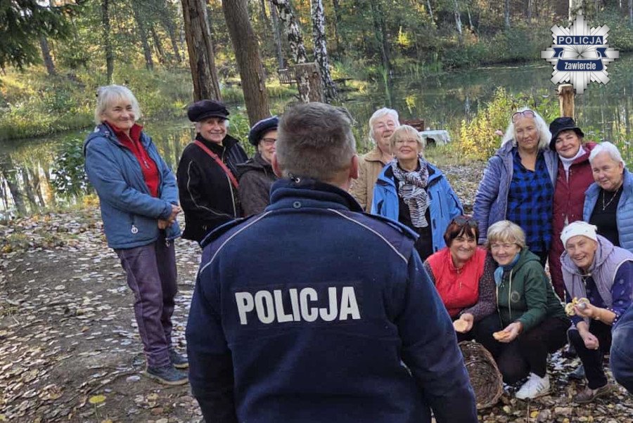 Dzielnicowi z Łaz spotkali się z członkiniami klubu Senior Plus. Wspólnie rozmawiali o bezpieczeństwie starszych osób w miejscach publicznych, ale także podczas jesiennych spacerów i w trakcie grzybobrania. Spotkanie odbyło się w plenerze, a uczestniczki mogły w praktyczny sposób zapoznać się z zasadami bezpiecznego zachowania na terenach leśnych.