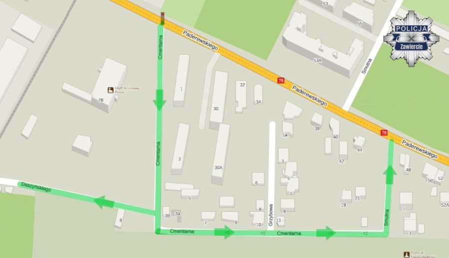 W dniach od 31 października do 3 listopada br. ulica Cmentarna stanie się ulicą jednokierunkową i będzie jedynym możliwym dojazdem do cmentarza. Wyjazd zaplanowano ulicami: Smutną i Daszyńskiego. Wjazd na ulicę Smutną z ulicy Paderewskiego będzie niemożliwy. Do cmentarza nie dojedziemy również ulicą Daszyńskiego.