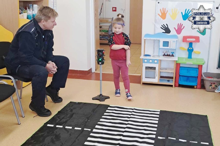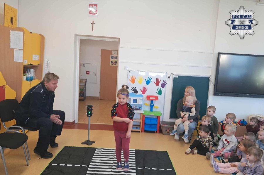 Podczas zajęć z dzielnicowym najmłodsi z przedszkola w Żarnowcu przypomnieli najważniejsze zasady, które każdy mały uczestnik ruchu drogowego powinien znać. Omówili znaczenie sygnalizacji świetlnej, przejść dla pieszych oraz konieczność stosowania elementów odblaskowych po zmroku. Przedszkolaki mogły sprawdzić swoją wiedzę nie tylko w teorii, ale także w praktyce. Chętnie demonstrowały, jak poprawnie przechodzić przez „zebrę”.