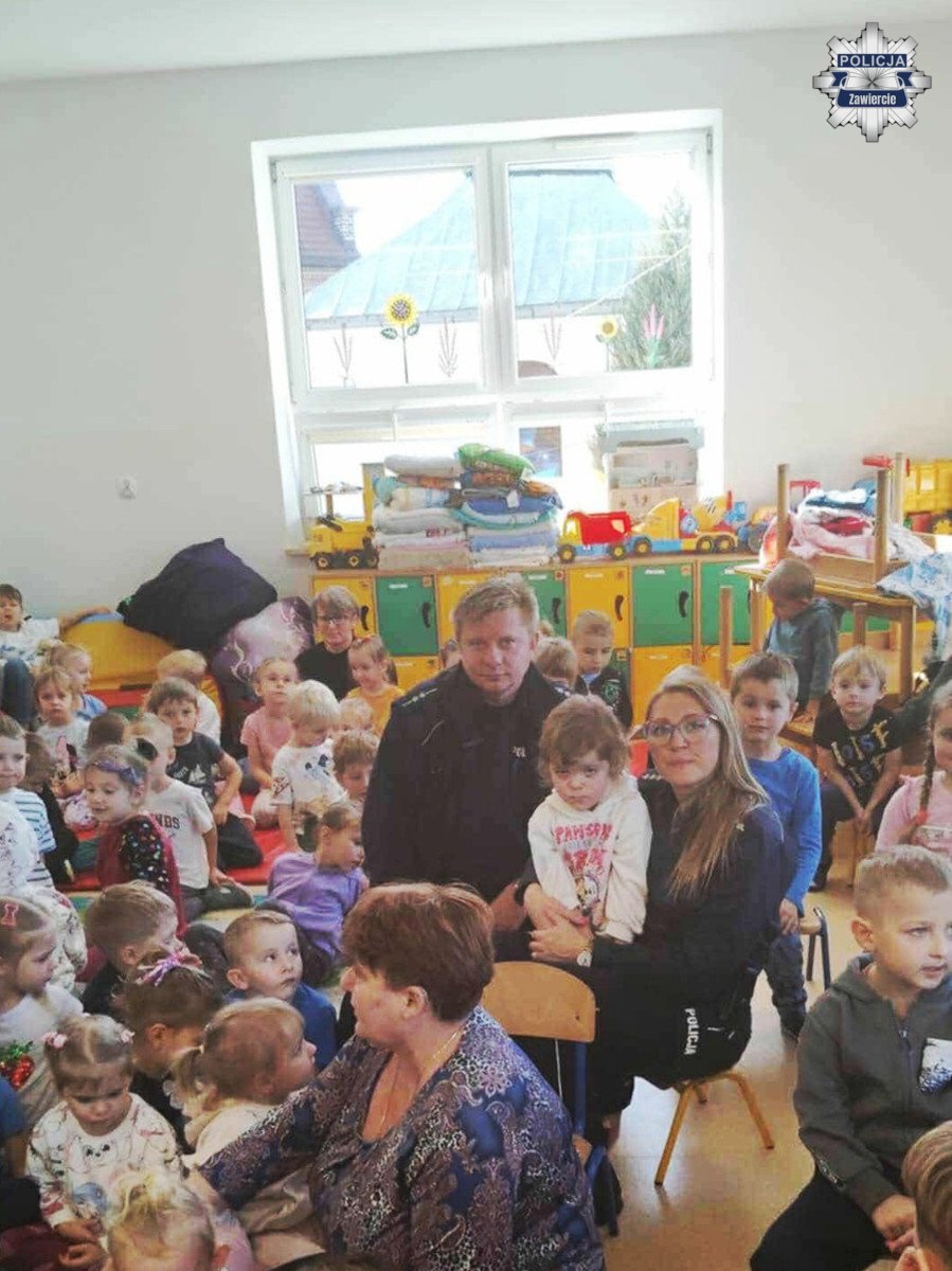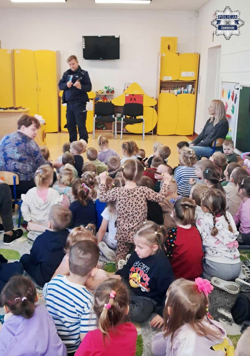 Ogrodzieniecki dzielnicowy z przedszkolakami o bezpieczeństwie