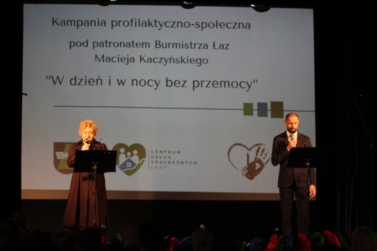 W okresie od 15 września do 19 listopada na terenie Łaz przeprowadzona została kampania profilaktyczno-społeczna „W Dzień i W Nocy Bez Przemocy”. Jej głównym celem było przede wszystkim zwiększenie świadomości społecznej na temat przemocy domowej, a co się z tym wiąże przeciwdziałanie temu zjawisku. Dodatkowo podejmowane w ramach kampanii przedsięwzięcia podkreślały, jak istotną sprawą są pozytywne relacje rodzinne, a także promowały zdrowy i bezpieczny styl życia. Nie zabrakło również informacji na temat świadczonej przez różne podmioty pomocy ofiarom przemocy domowej