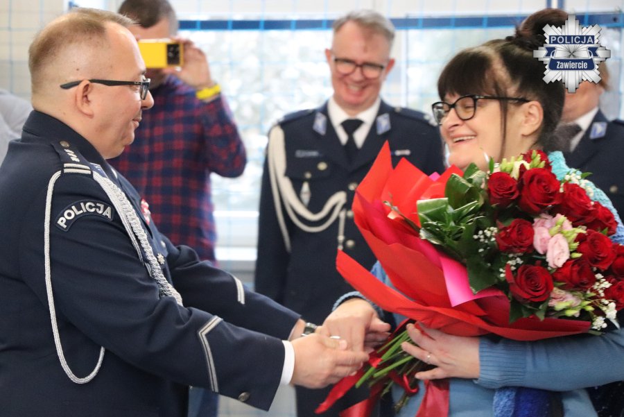 Słowa wdzięczności inspektorowi Arturowi Klimkowi przekazała także Prezydent Zawiercia pani Anna Nemś, która również podkreślała, że współdziałanie na rzecz bezpieczeństwa było na wysokim poziomie. Pani Prezydent złożyła także życzenia nowej szefowej zawierciańskiej komendy, z która będzie współpracować na rzecz porządku publicznego w mieście.