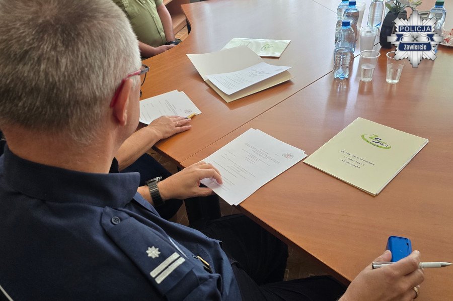 Zawierciańską komendę reprezentował I Zastępca Komendanta Powiatowego Policji w Zawierciu podinspektor Paweł Sobota. Wspólnie z panią Elżbietą Horbatowską - Dyrektor Zespołu Szkół w Porębie oraz podporucznikiem Grzegorzem Wójcikiem – Koordynatorem ds. klas mundurowych Placówki Straży Granicznej w Sosnowcu, rozmawiali na temat programu nauczania, który policjanci i strażnicy graniczni będą realizować od września.